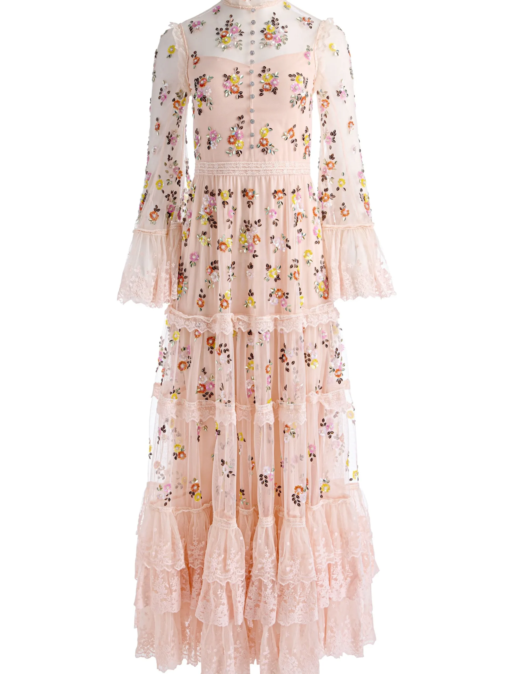 - Hand-embellished floral beading on soft tulle