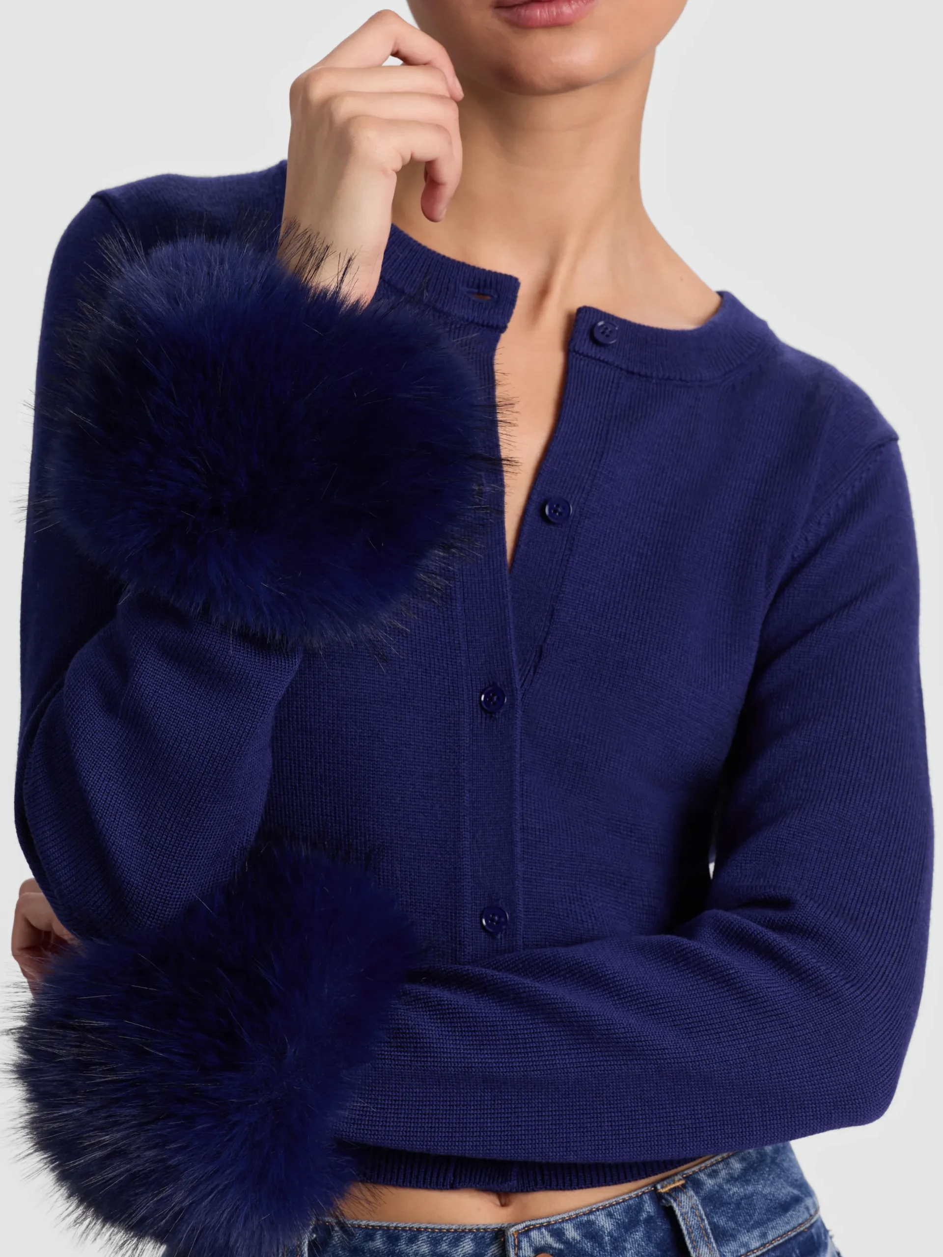 - Detachable faux fur cuffs