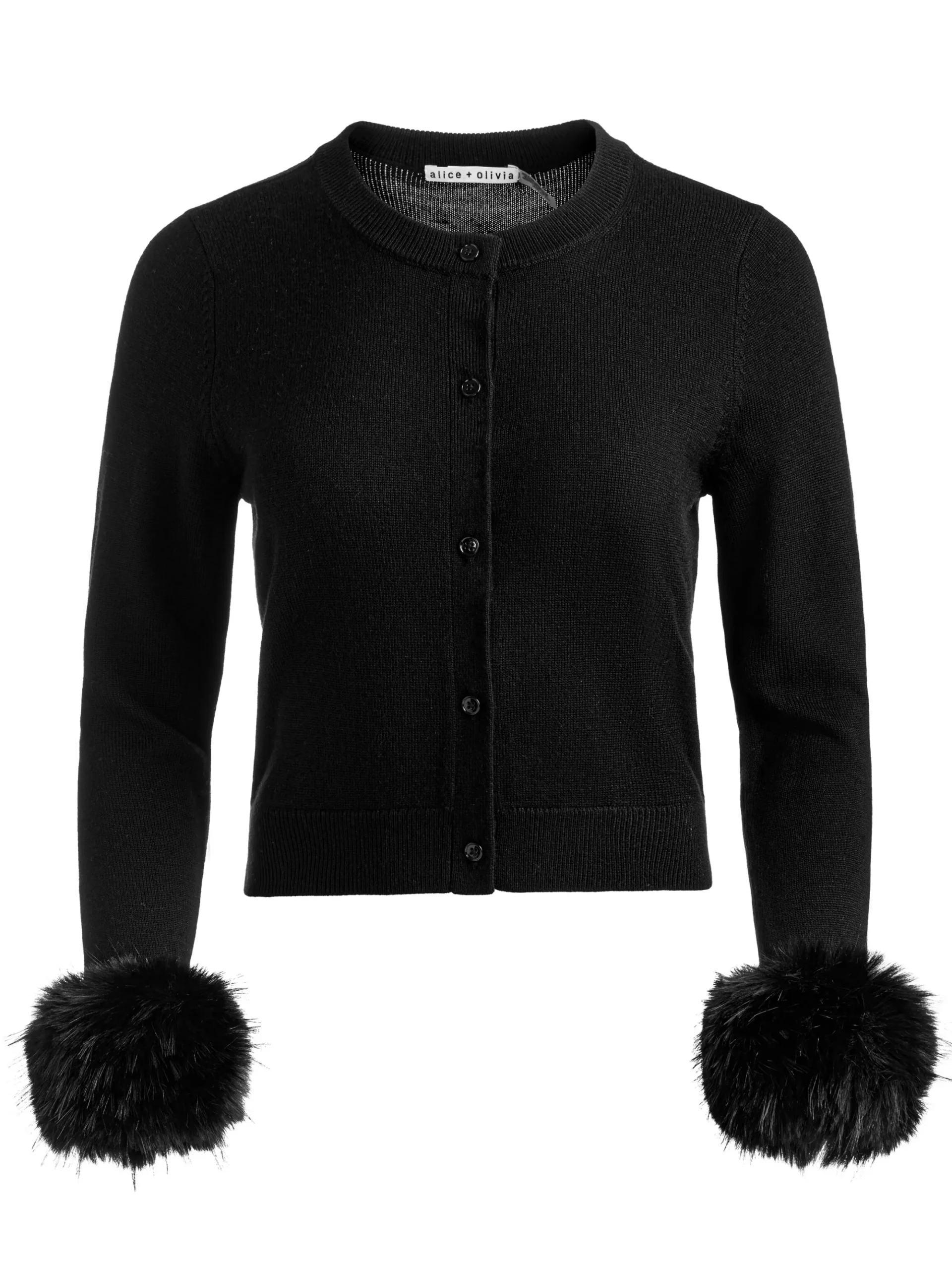 Our best-selling Dollie is back–now with a playful twist. This detachable black fur cuff cardigan offers two looks in one: keep the cuffs on when you’re in the mood for something a little more fun, snap them off when you want that classic vibe. Spun from ultra-luxe 100% merino wool and cut in a cropped, shrunken fit, this adorable cardigan is just as perfect draped over the shoulders as it is buttoned up for an effortlessly polished vibe. A true cult favorite, it’s the kind of piece you’ll want in every color–and then some.
