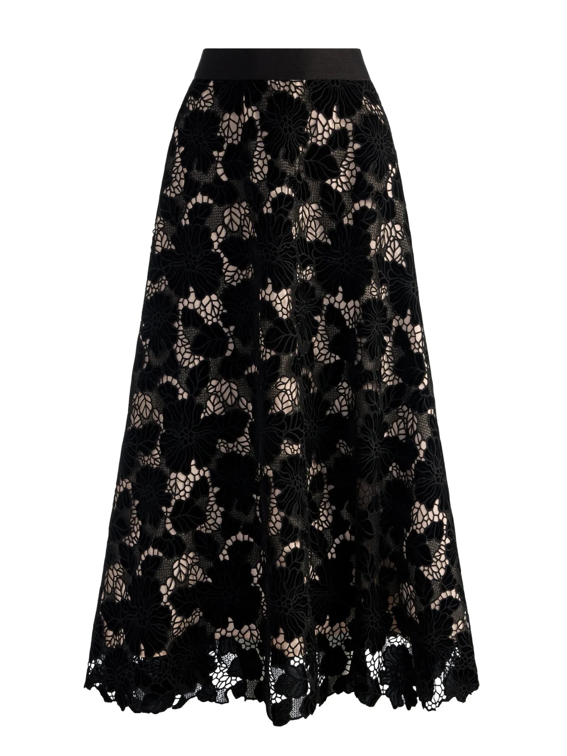 - Floral velvet cutwork on almond tulle