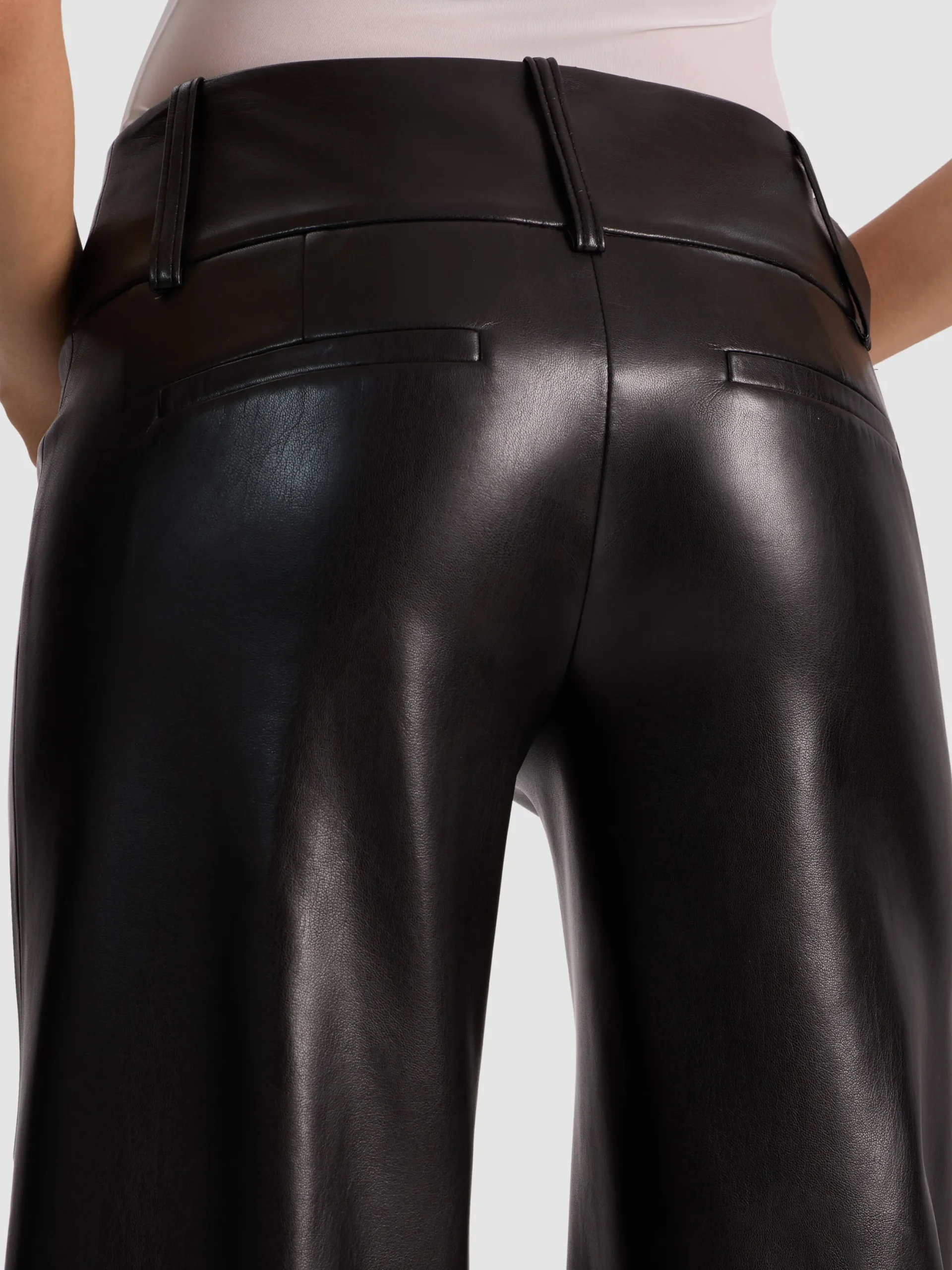 The pant that built a following. Our cult-favorite Olivia is back- this time in soft black vegan leather with a cool-girl wide leg silhouette. The ultra-flattering fit features a low rise, wide waistband, and flare that elongates the leg like magic. A must-have for fall statement dressing.