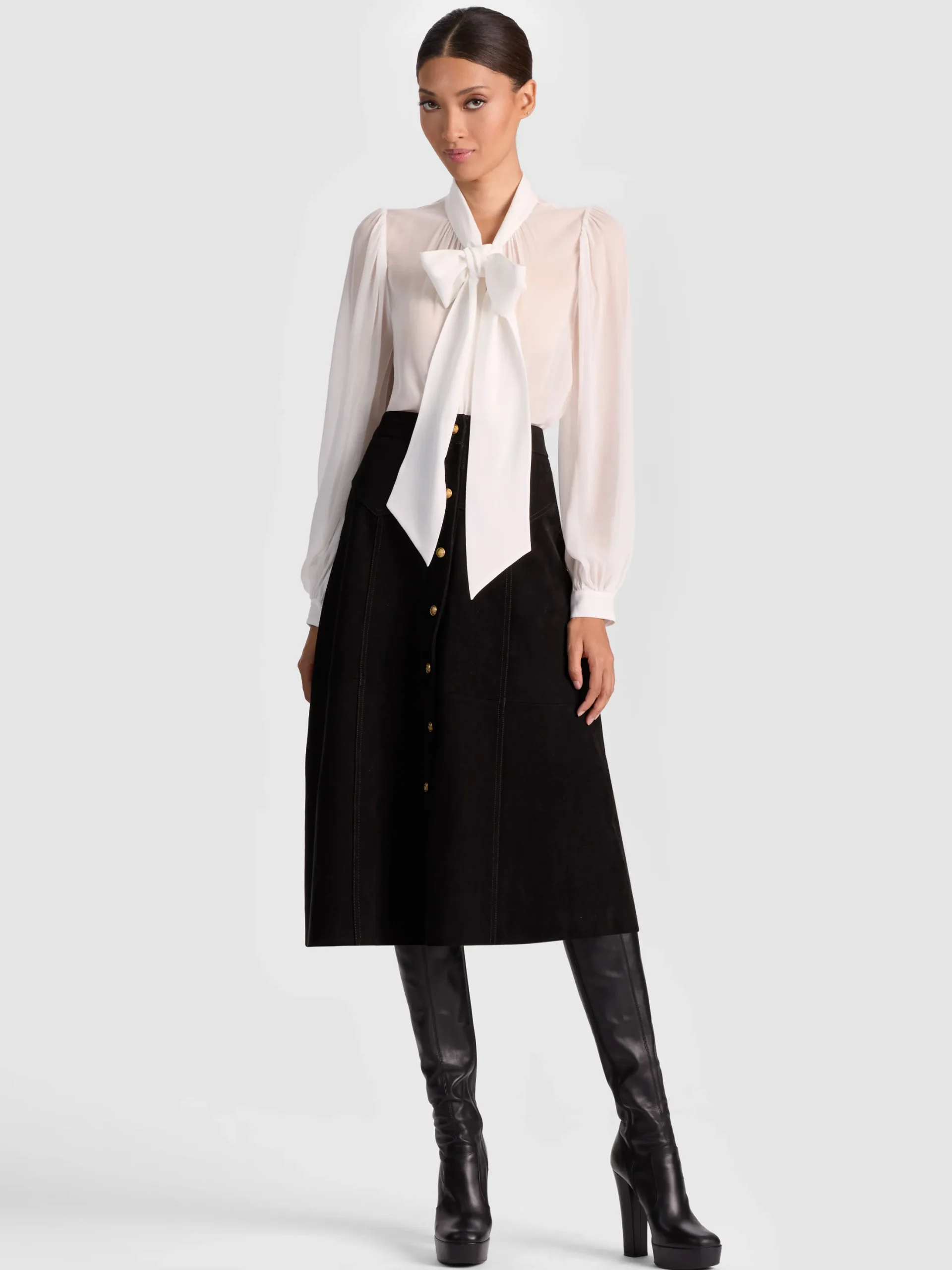 - Suede midi skirt