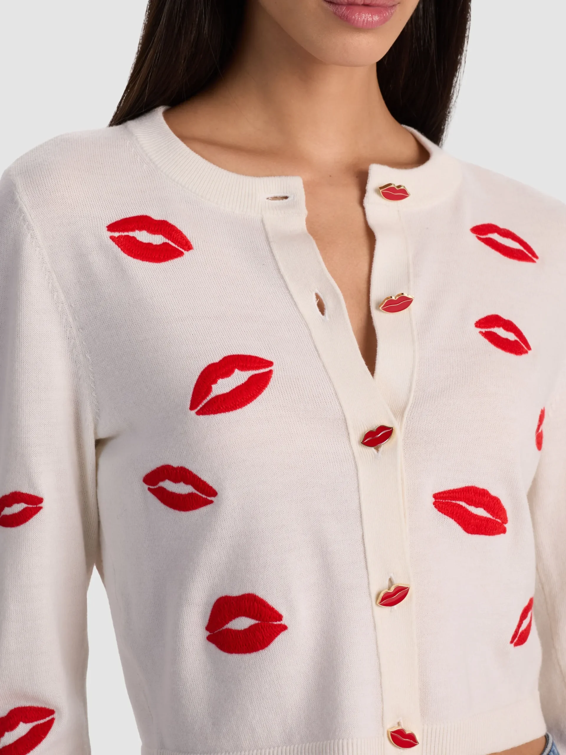 - Embroidered lip motifs