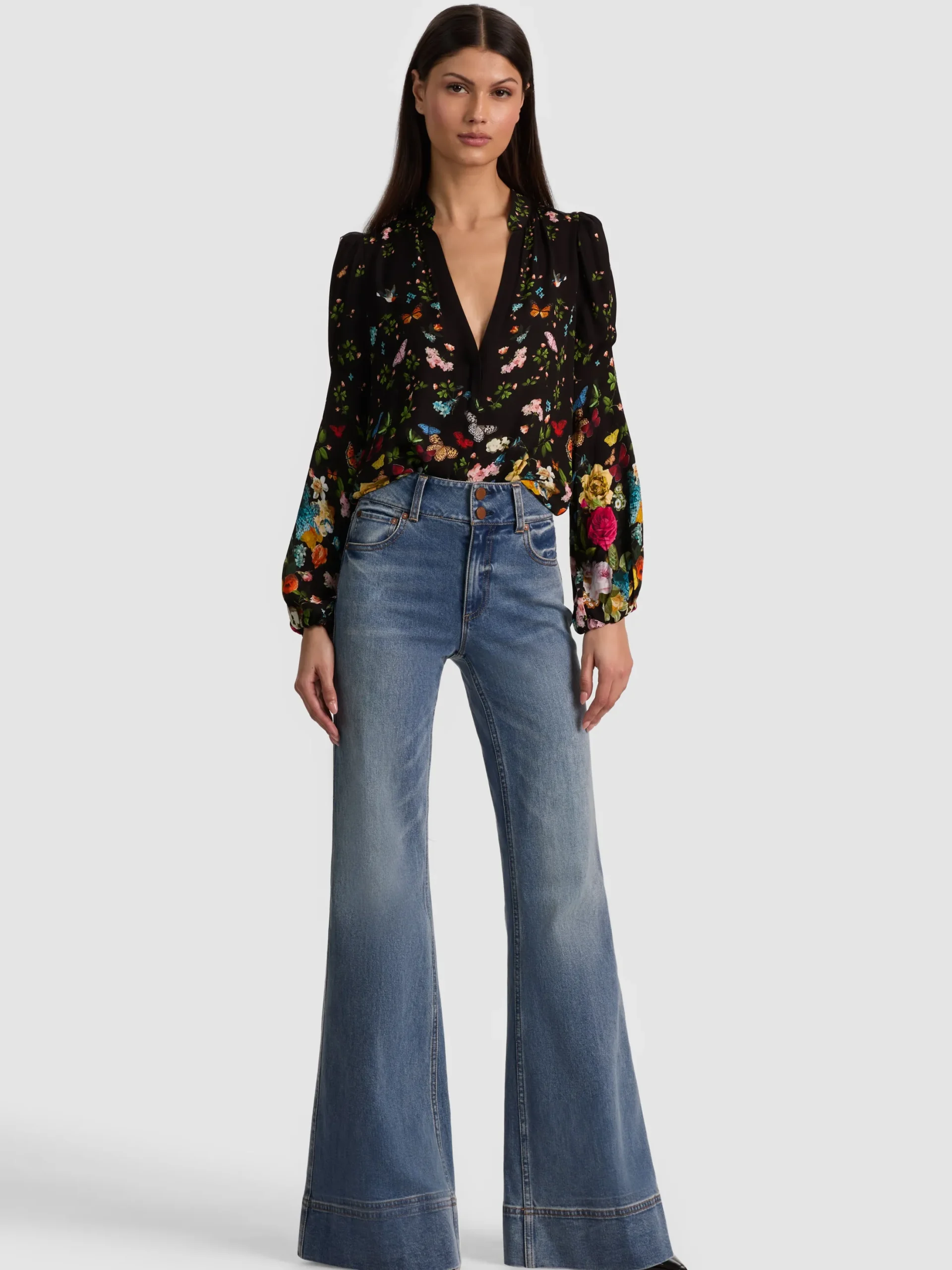 - Blouson sleeves