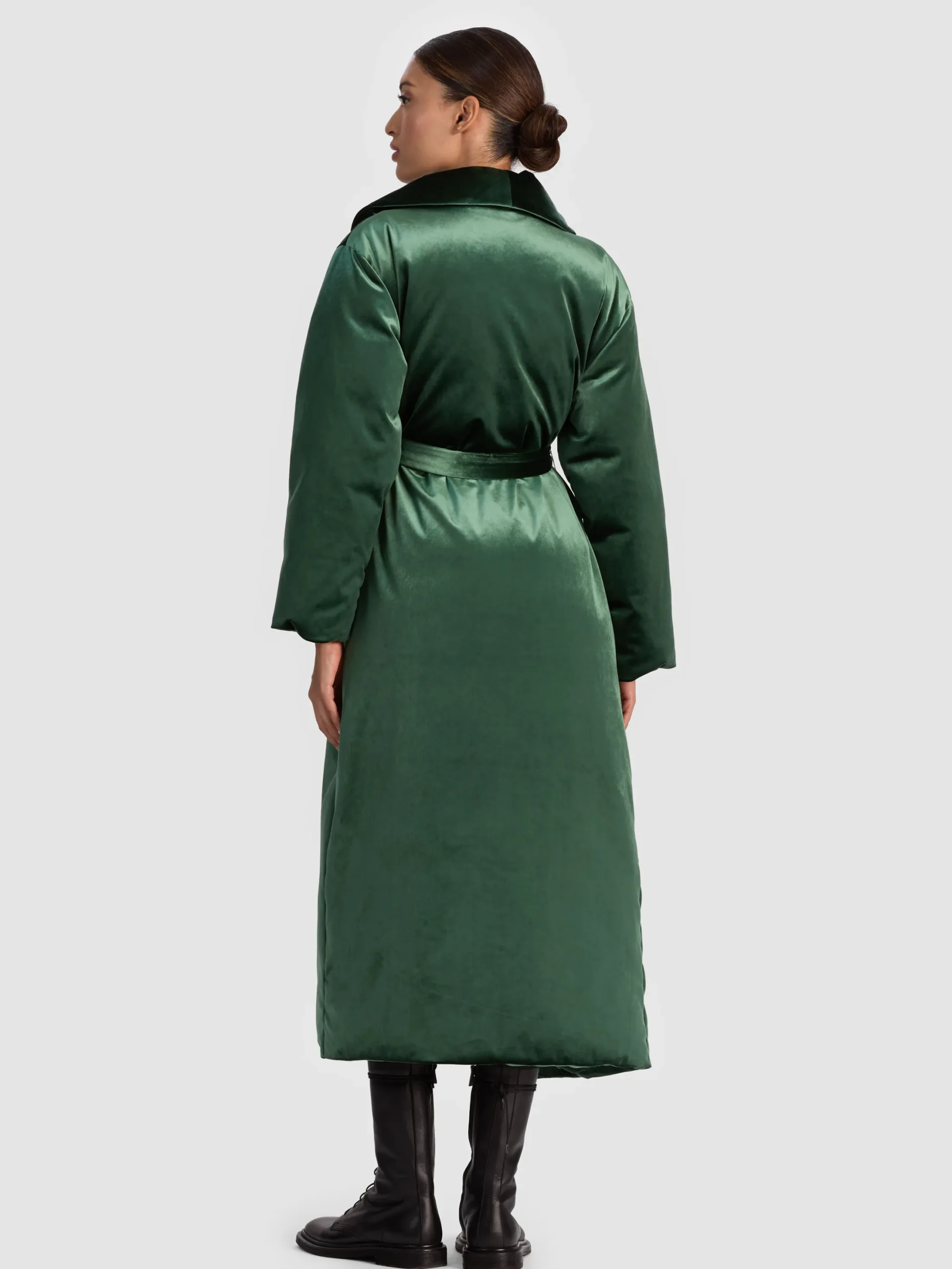Designed in an eye-catching shade of green velvet, this coat turns cold weather into a style moment. It features a shawl collar, adjustable tie waist, and a long, cozy silhouette that’s fully lined for comfort. Whoever said layers have to be boring clearly hasnAt met this one – you’re not going to want to take it off.
